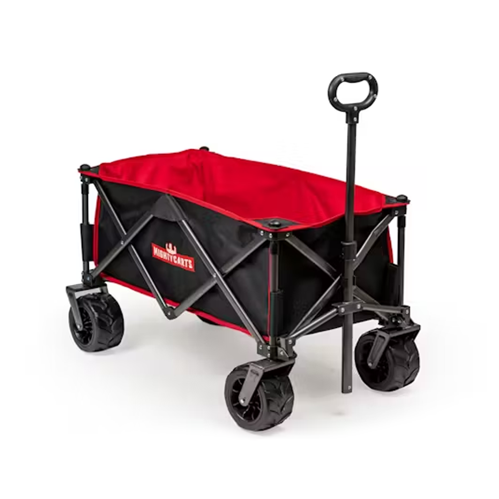 The Mighty Beach Cart cart features 360¬∞ rotation 10cm wide wheels – great for sand journeys – durable canvas, and a sturdy powder coated steel frame. With a weight capacity of up to 80kg, this cart really is Mighty when it comes to lugging your gear out and about.